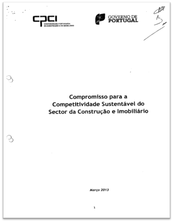 Em 8 de março de 2013, foi assinado, entre o Governo e a CPCI - Confederação Portuguesa da Construção e do Imobiliário, um documento estratégico para o sector, denominado "Compromisso para a Competitividade Sustentável do Sector da Construção e do Imobiliário".
